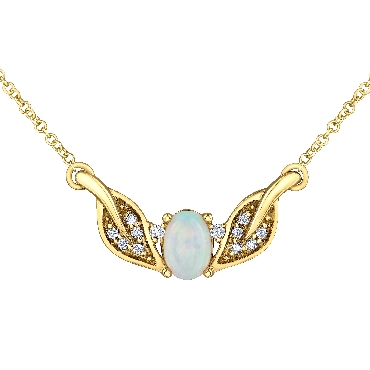 10K yellow gold opal and diamond pendant.