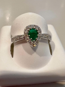 14K White Gold Diamond & Emerald ring.
