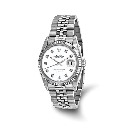Swiss CrownT USA Pre-owned Rolex-Independently Certified Steel 36mm Jubilee Datejust White Diamond Dial and 18k Fluted Bezel Watch