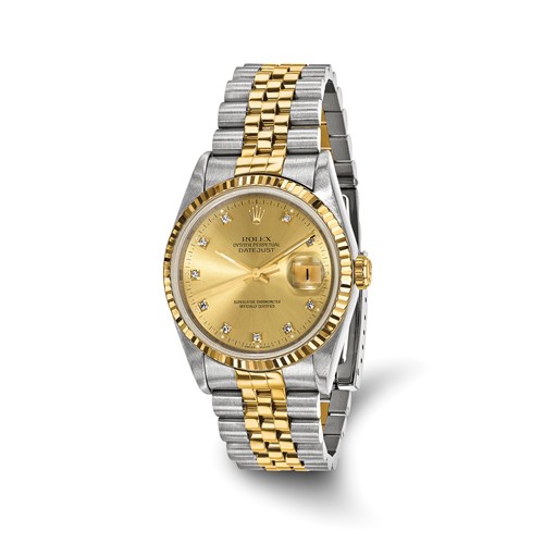 Swiss CrownT USA Pre-owned Rolex-Independently Certified Steel and 18k 36mm Jubilee Datejust Champagne Diamond Dial and Fluted Bezel Watch