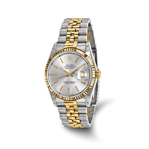 Swiss CrownT USA Pre-owned Rolex-Independently Certified Steel and 18k 36mm Jubilee Datejust Silver Dial and Fluted Bezel Watch